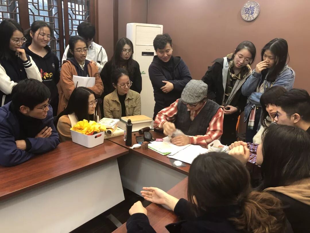 课后,徐谷甫老师鼓励大家就篆刻艺术和课程提问,同学们热情高涨,延伸出如篆刻名字时字体繁简的选择、篆刻比赛中作品的欣赏等话题,徐谷甫老师知无不言,将各种相关知识娓娓道来,让大家收获颇丰。