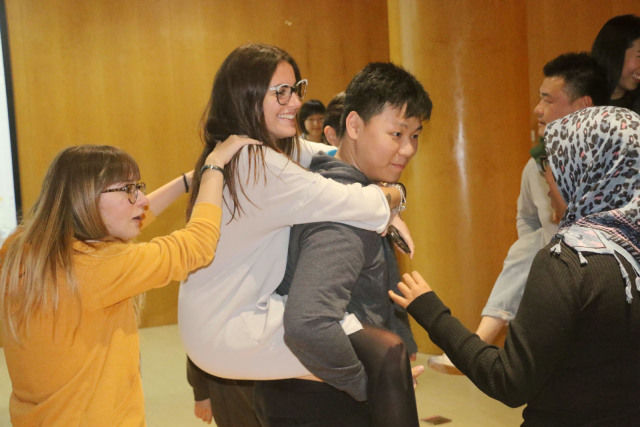 小组竞赛的第一个项目是“你比我猜”。游戏中,各组必须派出同等数量的中国学生和留学生上台参赛,全程只允许肢体交流,充分考验中外学生的创造力、表现力和团队协作能力诸如“单身狗”等热点词汇,更是对留学生的智慧和中文水平提出了挑战。