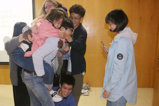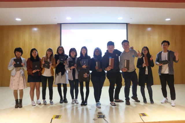 活动的最后一个流程,就是激动人心的颁奖典礼了。获胜的队伍依次上台领奖并合影留念,奖品都具有浓郁的复旦气息,代表着任重书院对来自世界各地留学生的真诚祝福。