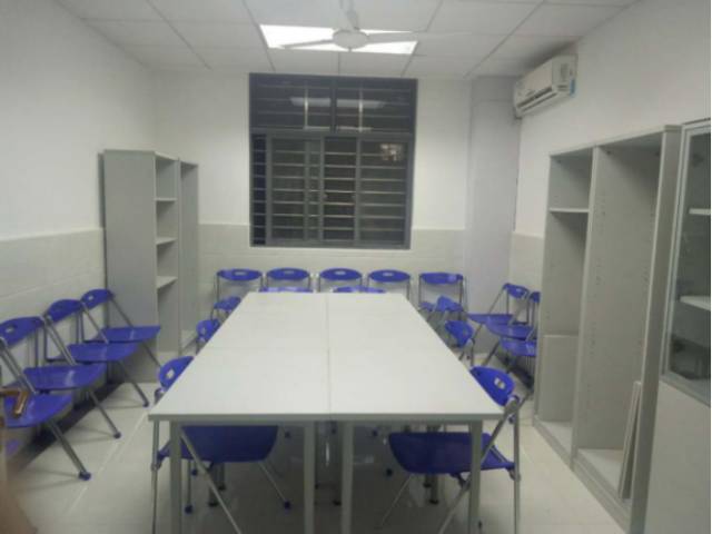 内部设施:桌椅若干,书架若干,立式白板一个