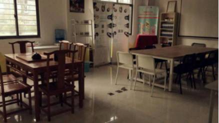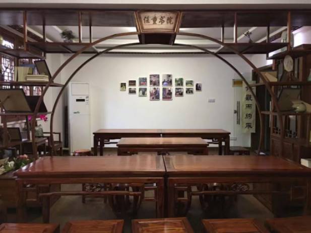 内部设施:木质长桌6张,木凳若干,木质软塌,棋盘,书画台,屏风,书柜,架栏等。