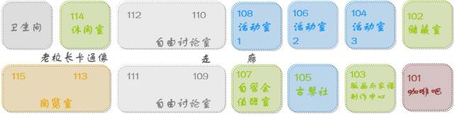 6号楼:可出借活动室104/106/108;Hour's咖啡吧101