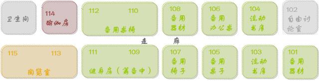 2号楼:自由讨论室102,阅览室113  瑜伽房114